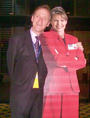 Gov. Sarah Palin poses with a cardboard cutout of her favorite blogger.