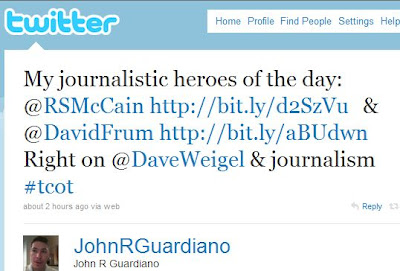 To surrender to that demand would be to give credence to Matthew Yglesias’ oft-iterated and counterfactual assertion that conservatives are incapable of doing “real journalism.” And it is especially infuriating when these demands are delivered as part of a More Right-Wing Than Thou message, as if failure to join the Dave Weigel high-tech lynching indicates that I am ideologically unsound and must therefore be shunned.