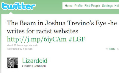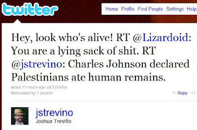 A couple of days ago, Trevino was named among the “Top 25 Conservatives on Twitter.” And it was just about then that Trevino and his colleagues began kicking around a Twitter meme, “I’ve been blogging so long . . .” in which they recounted their memories of the medium’s early days. Two of Trevino’s contributions mentioned Charles Johnson of Little Green Footballs:
