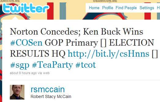 Norton lost the primary, yet got more votes than Bennett. That was about the only real place where you could do head-to-head match-ups last night (CT-GOV was kinda-sorta the other), and it shows that the enthusiasm gap’s alive and well in Colorado.