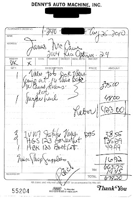 Having a teenage son who’s a budding shade-tree mechanic (mentored by his more accomplished buddy) certainly saves labor costs. “Four hundred something” is nothing compared to what this kind of job would cost at a regular auto-repair place. So when my wife dispatched me to fetch the part, I had in mind a certain price that would be paid.