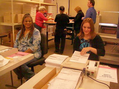 Soon to be the World’s Most Famous Ballot-Counters operate the Accu-Vote optical scanners at the Elections Division office in Anchorage.