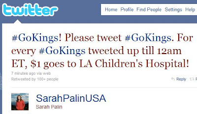 So go Tweet “#GoKings” (until 9 pm. PT, which is midnight ET) and help raise money for a good cause. I think you’ll find it easier to do if you’ll Tweet with both hands.