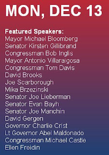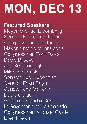[T]he only Republicans present at Columbia University’s modern, square Alfred Lerner Hall seemed to be those who had recently lost primary races, such as South Carolina Rep. Bob Inglis and Delaware Rep. Mike Castle, or former Republicans like Florida Gov. Charlie Crist and New York Mayor Michael Bloomberg. No other senior elected Republican officials were in attendance, though a range of Democrats were present, some of them seeming a bit mystified by the bipartisan cast of the event . . .