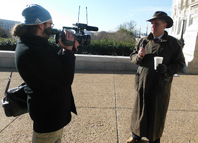 That’s Brett Baier of Fox News doing a report in front of the Capitol. Actually, he was going over his notes prior to going on air. On days when something big like a State of the Union Address is happening, you’ll see six or eight camera crews scattered around the Capitol grounds doing what they call “stand ups.” Apparently the rule in TV news is, you aren’t really doing congressional reporting unless people can see the Capitol dome behind your head while you’re talking. I don’t think that rule applies to the Internet, but I figured I’d post that picture of me in front of the Capitol dome, just in case.