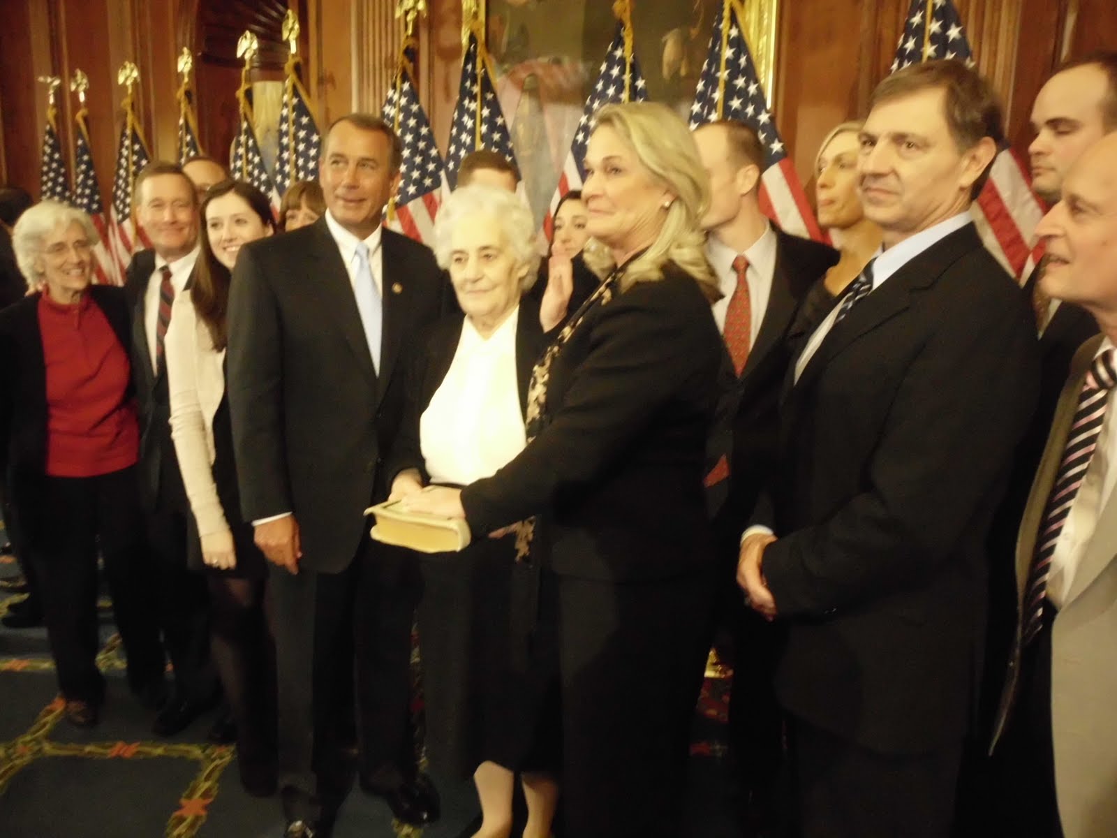 About an hour after newly elected Speaker John Boehner, R-Ohio, administered the mass oath of office for all 435 House members, Buerkle had to rush from the House floor. She had a 3:30 p.m. appointment for a one-on-one ceremonial swearing-in for the cameras with Boehner and her family members.