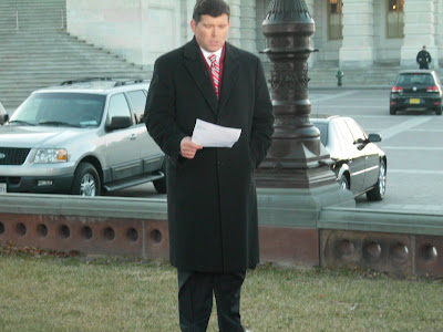 I had a good conversation with Mr. Terry who, despite his firebrand reputation as the founder of Operation Rescue, is actually a genial and humorous fellow. While I was talking to him, I saw a familiar face coming up the sidewalk from the direction of the Longworth building: