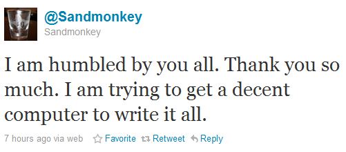Suggestion for Pajamas Media CEO Roger Simon: Bring “Sandmonkey” to Washington next week for CPAC, so I can buy him a beer.