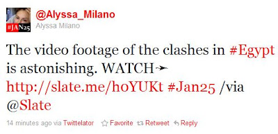 One of my Twitter friends is closely following events in Egypt: