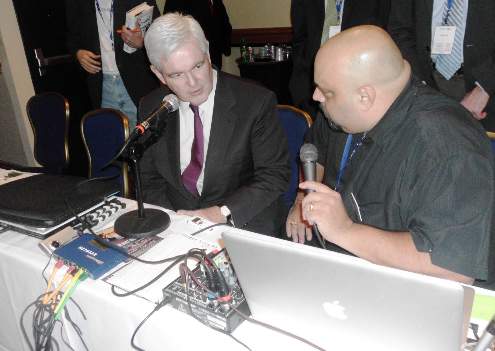 Newt Gingrich interviewed by bloggers including CPAC Blogger of the Year Javier Majarres and — of all people! — notorious left-wing provocateur Mike Stark.