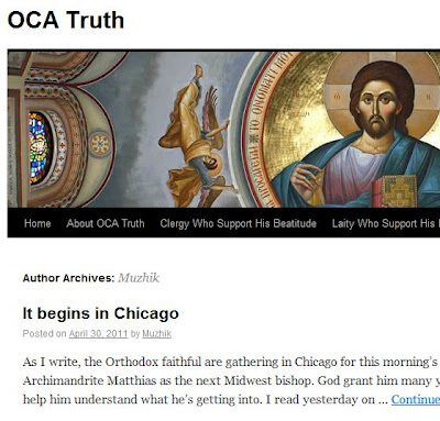 A round-up of the story at Est Quod Est blog may leave some readers confused, but it identifies Dreher as “Muzshik” (Russian for “peasant”) on the Orthodox Christian blog OCATruth.com. (OCA = Orthodox Church in America.) The blog launched on March 3 in defense of OCA primate, Metropolitan Jonah Paffhausen, who is opposed by some Orthodox clergy and laity, including Mark Stokoe, who blogs at OCANews.org.
