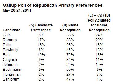 I would not suggest that Mr. Cain is one of the leaders. But in a field where the three insider favorites to win the race — Mitt Romney, Tim Pawlenty, and Jon Huntsman — collectively poll at just 25 percent, and where some Republicans seem to be pining for an outsider (perhaps even outside-the-box) choice, he’s the freshest face.