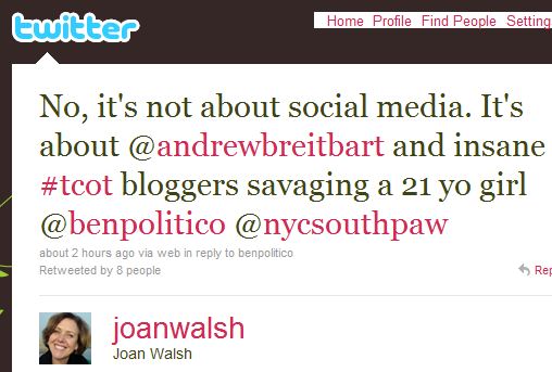 @JoanWalsh Blames @AndrewBreitbart and #tcot Bloggers for #WeinerGate Story