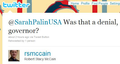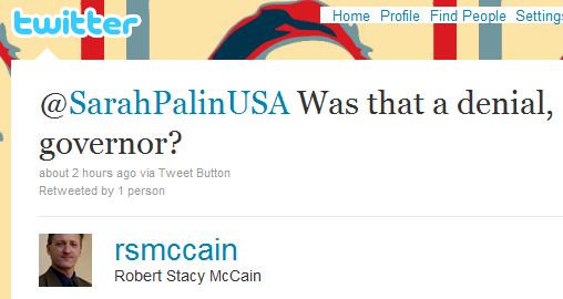 UPDATE: Nap delayed again, because there’s a Memeorandum thread now, and I see that CNN’s Alison Harding takes Palin’s Tweet as a denial. But is it?