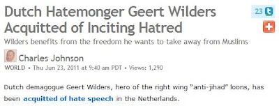 A big victory for free speech in Europe. The courageous Dutchman’s most enthusiastic American admirer Pamela Geller is celebrating.