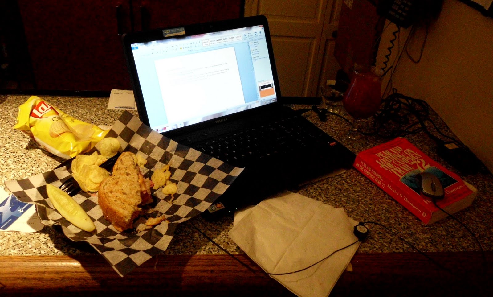 The National Desk, at the bar of the airport lounge, 11:30 a.m.
