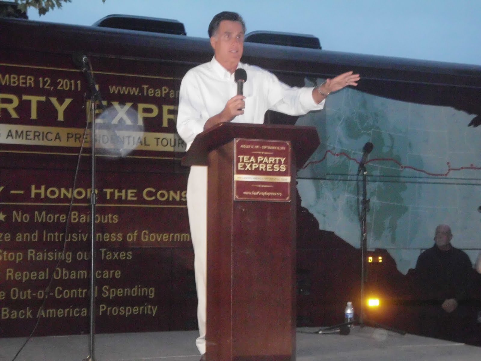 Mitt Romney headlined tonight’s Tea Party Express rally and here are just a couple of photos: