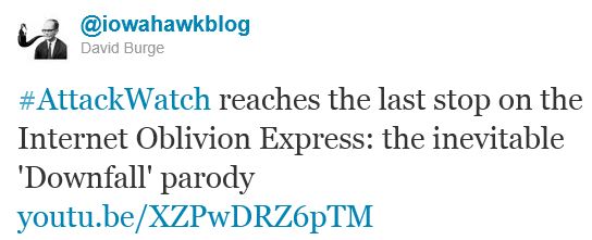 And from the always excellent IowaHawkBlog: “#AttackWatch have you cried “uncle” yet? Because we can keep this up all f***in’ day.”