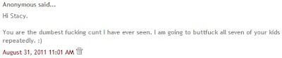 One of those bums in her comments actually said her kids should be raped and killed, that they would be better off than being raised by a mother like her.