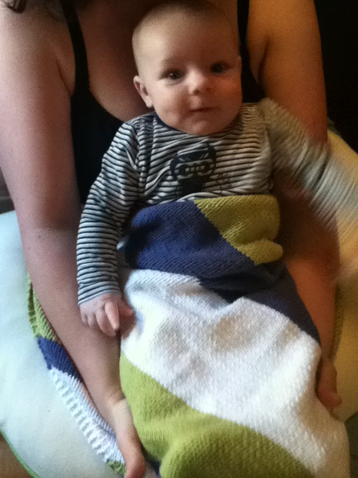 […] The World’s Youngest Blogger, wrapped in a blankie knitted by your’s truly. See how happy he is, how snugglicious, how […]