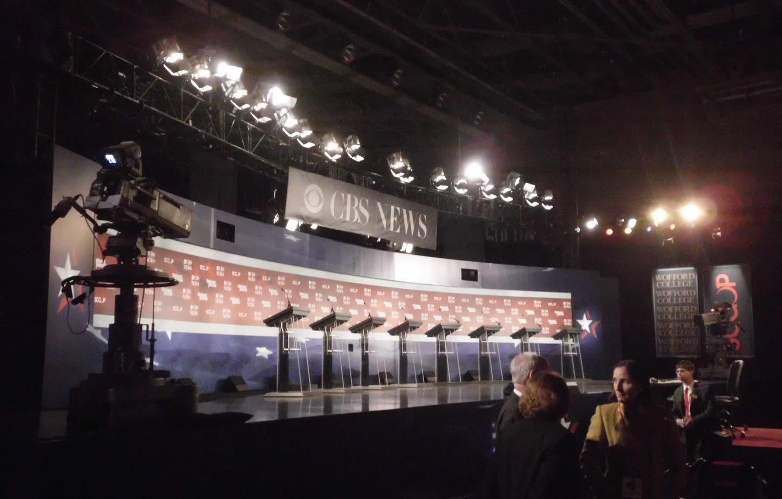 We’re here at the Republican presidential debate at Wofford College (8 p.m. ET, CBS). Ali Akbar and Karen Martin have got a group of us bloggers into the event. I’m being assisted in this endeavor by my12-year-old son Jefferson: