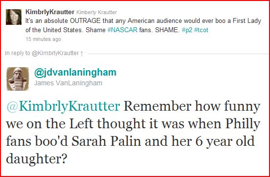I take a back seat to no man in my disdain of her and her husband, but this was an embarrassment to NASCAR fans. We are better than that. We were raised better than that.