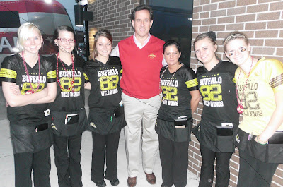 UPDATE II: As the senator was leaving the restaurant, the Buffalo Wide waitresses demanded to have their photo taken with the future President of the United States:
