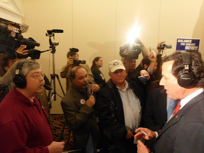 When Rick Santorum arrived at the Hillsborough County Republican Party’s dinner Friday, the swarm of reporters photographers and TV cameramen following him was so huge that his own daughter Elizabeth and son Daniel couldn’t get near their father. This video begins with me entering the door and working my way through the media mob until, by the 2-minute mark, I was front and center: