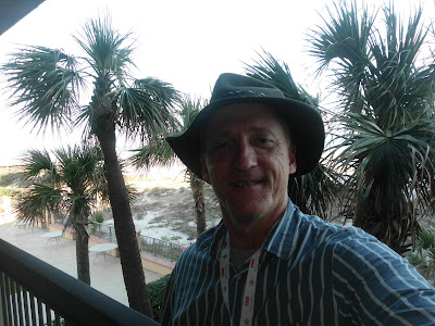 The clerk at the desk was extremely helpful and gave me a free upgrade to an oceanfront room. I asked her if there was a Goodwill store nearby, so I could buy a cheap sports coat, since the only coat I brought with me is my big winter overcoat. She gave me directions. I’m on the second floor, with a palm tree right outside my balcony. It’s nice.