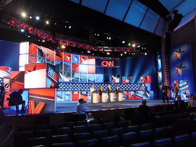 Carl Cameron was standing near the satellite trucks parked next to the press filing center when I got back from the media walk-through at Lazzara Performance Hall on the University of North Florida campus, site of tonight’s CNN debate (8 p.m. ET).