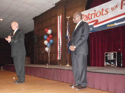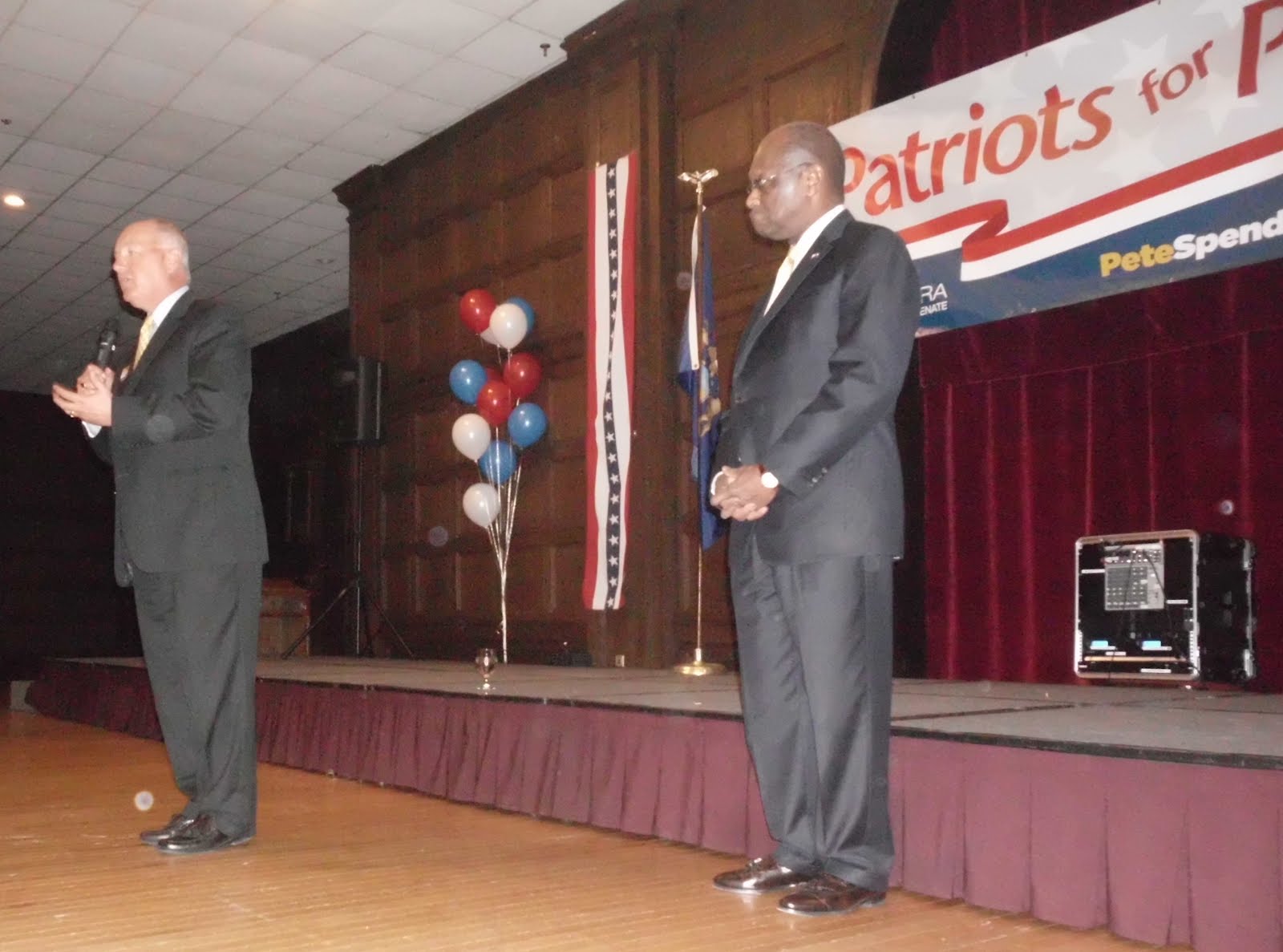 Pete Hoekstra (left) and Herman Cain take questions from the audience.