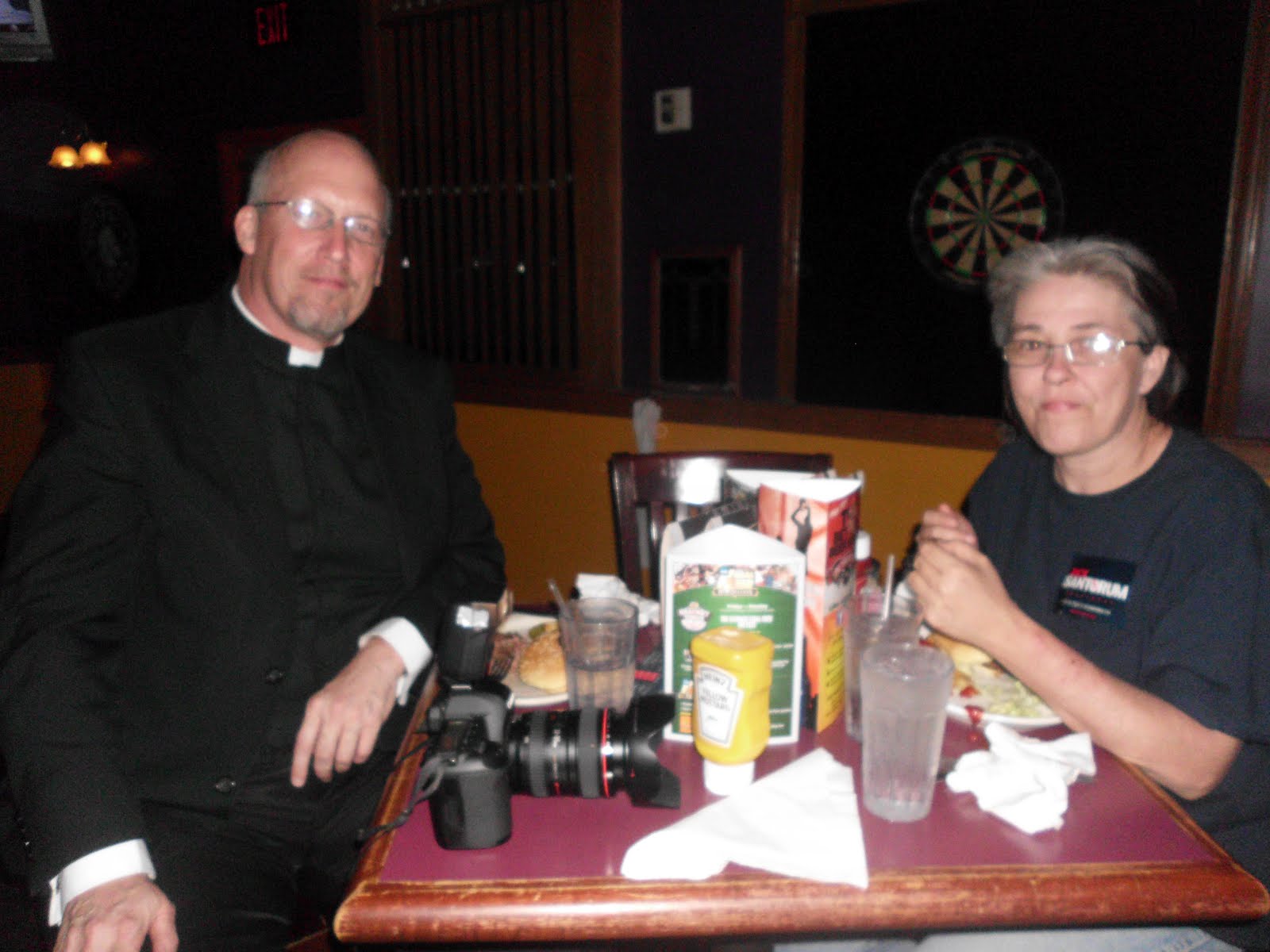 Here is Father Allen with Santorum super-blogger Lisa Graas at tonight’s Louisiana victory party. Lisa loves priests.