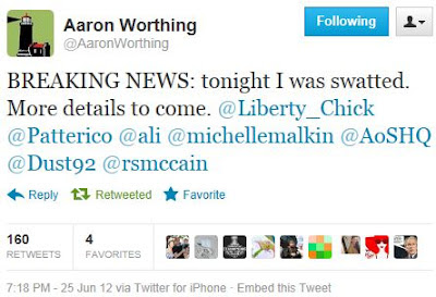 […] family safe — McCain has posted photo captures of Aaron’s and others’ tweets and wrote this: UPDATE: Patterico […]