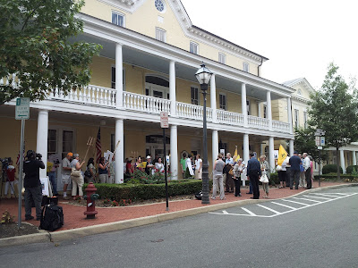 The crowd was of sufficient size that the hearing room was filled to capacity, leaving the bulk of the 50 or so Tea Party protesters outside, where, in contrast to #Occupy events, no one fretted personal safety.