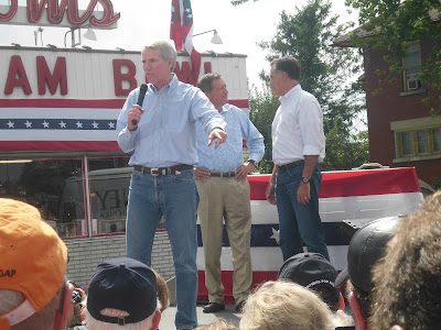 A crowd of more than 500 greeted Romney at Tom’s Ice Cream Bowl on McIntire Street, where he promised to do “what nees to be done to get America working.” People were still lined up to get into the rally when Romney finished his short speech, during which he said, “I want small business to do well because I want people to do well in America.”