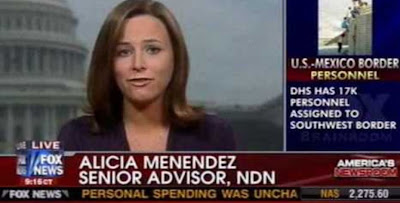 “Alicia Menendez is a Senior Advisor to NDN and its sister organization, the New Policy Institute. . . . Ms. Menendez comes to NDN/NPI as a well-established television commentator and experienced organizer in important emerging communities. You can find her talking about national politics just about every week on the cable news networks, Fox and MSNBC. . . . She also spent time as a television segment producer and on-air contributor for RNN TV in New York, and was a primary surrogate on her father’s successful 2006 bid for the US Senate in New Jersey.”
