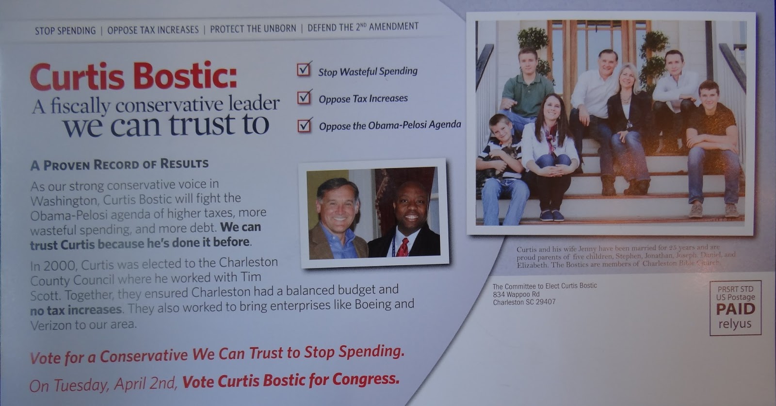 - March 25: #TrustCurtis @Bostic4Congress Campaign Has Eight Days to Stop Sanford in S.C.