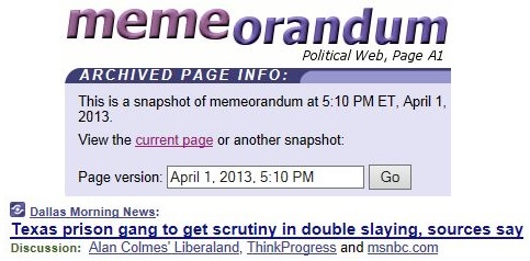 So by 5:10 p.m. ET, this was the Memeorandum thread: