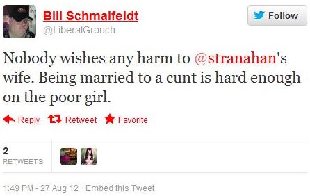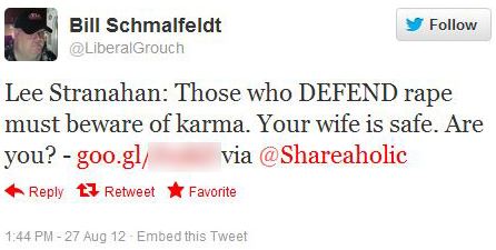 What did Lee Stranahan ever say or do to you, Mr. Schmalfeldt, to deserve such atrociously menacing behavior? Did you think that Lee Stranahan had no friends who would object to this?