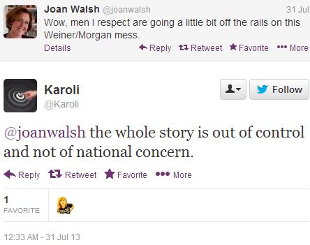 Whereas in 2012, you were certain that Anthony Weiner was an innocent victim of a “setup” by “Breitbots” — and thus, Weiner’s defender Neal Rauhauser was deserving of praise — now that Andrew Breitbart has been vindicated and Anthony Weiner has been disgraced, you say the Weiner story is “not of national concern.”