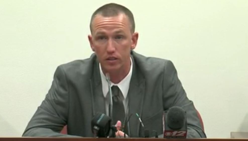 Detective Jeremy Shepherd testifies at Tuesday’s hearing.
