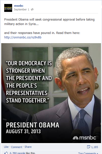 I am not sure what you mean by: “MSNBC has maneuvered itself into its current bizarre predicament as The Bomb Syria Now Network.” After all, we have always been at war with Eastasia.