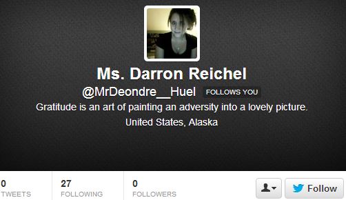 Say hello to the fake Twitter account Evie Pacocha PhD (@Mueller_Moriah2) alias Ms. Darron Reichel (@MrDeondre__Huel) also known as Johnny Gibson DVM (@MsBernhard__Mer):