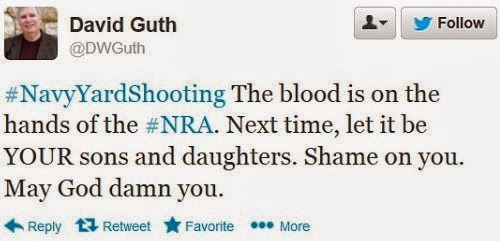 Mr. Guth is attempting to incite violence against family members of the NRA. He leaves himself some plausible deniability but he doesn’t have a problem with violence as long as the ‘right’ people are the target. And after the Benghazi massacre the left sang in harmony how horrible it would be to politicize the tragedy. Mr. Guth illustrates beyond dispute the left’s lack of ethical decorum.