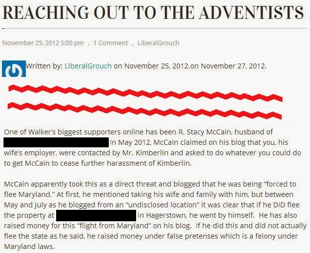 “There is a large fraud being perpetrated on conservative Internet users. . . . [Robert Stacy McCain] raised money for this ‘flight from Maryland’ on his blog. If he did this and did not actually flee the state as he said, he raised money under false pretenses which is a felony under Maryland laws.”