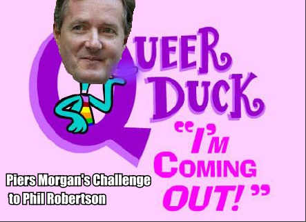 Why doesn’t Piers Morgan dress as a big queer duck and wander around the swamps of Louisiana? Reality tv I could support!