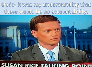 In fairness, the interviewer was asking him if he was the one who had edited a particular set of ‘talking points’. Since public relations bilge is what he was paid to produce and since this administration is up to its eyeballs in vocational flacks, its not surprising he could not remember at a 19 month interval whose b.s. this was; it all runs together.