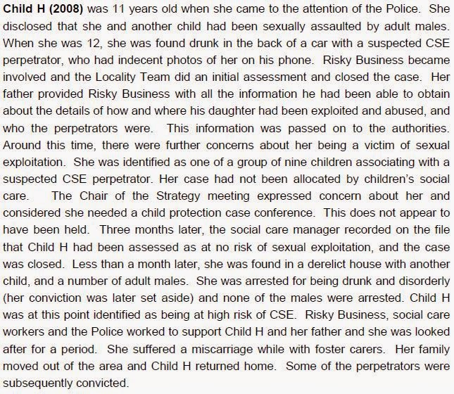 What is incredible is that, after one such case was clearly identified, the repetition of similar cases (like Child C, apparently exploited from the time she was 11) did not result in a law enforcement response to the pattern. Remember, this was occurring in a community of about 250,000 people — a medium-sized city, not a vast metropolis — and the sex-traffickers fit a very definite “profile.” In a city that size with an 8% minority population, once it became known that girls were being exploited by Pakistani men in their 20s or 30s, does anyone really think that it would have been difficult for police investigators to identify the chief suspects? But this kept happening year after year after year: