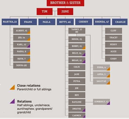 A further six have parents who were either aunt and nephew, uncle and niece, half siblings or grandparents and grandchild.