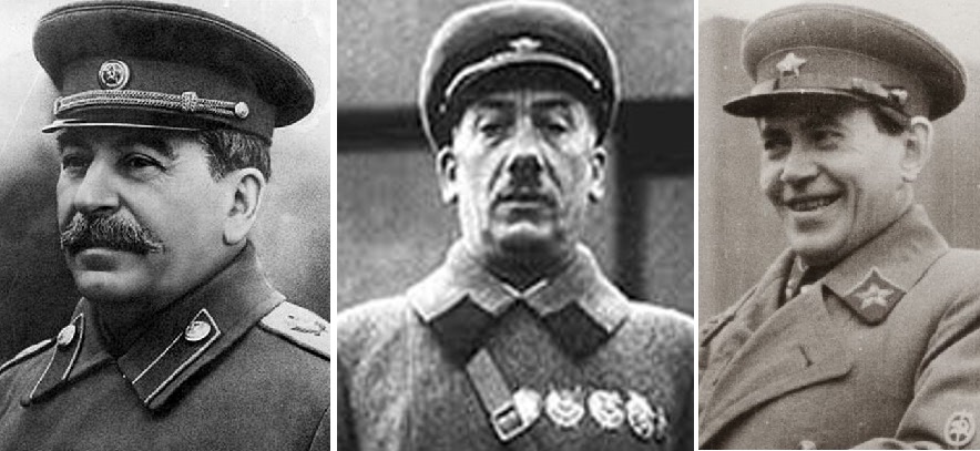 Left to right: Leon Trotsky, Felix Dzerzhinsky, Lavrenti Beria.
